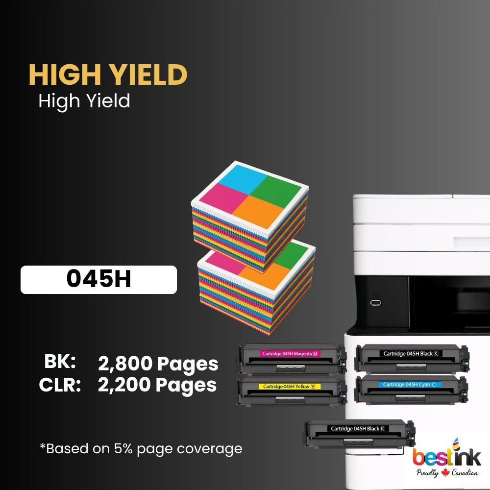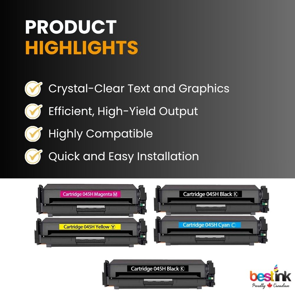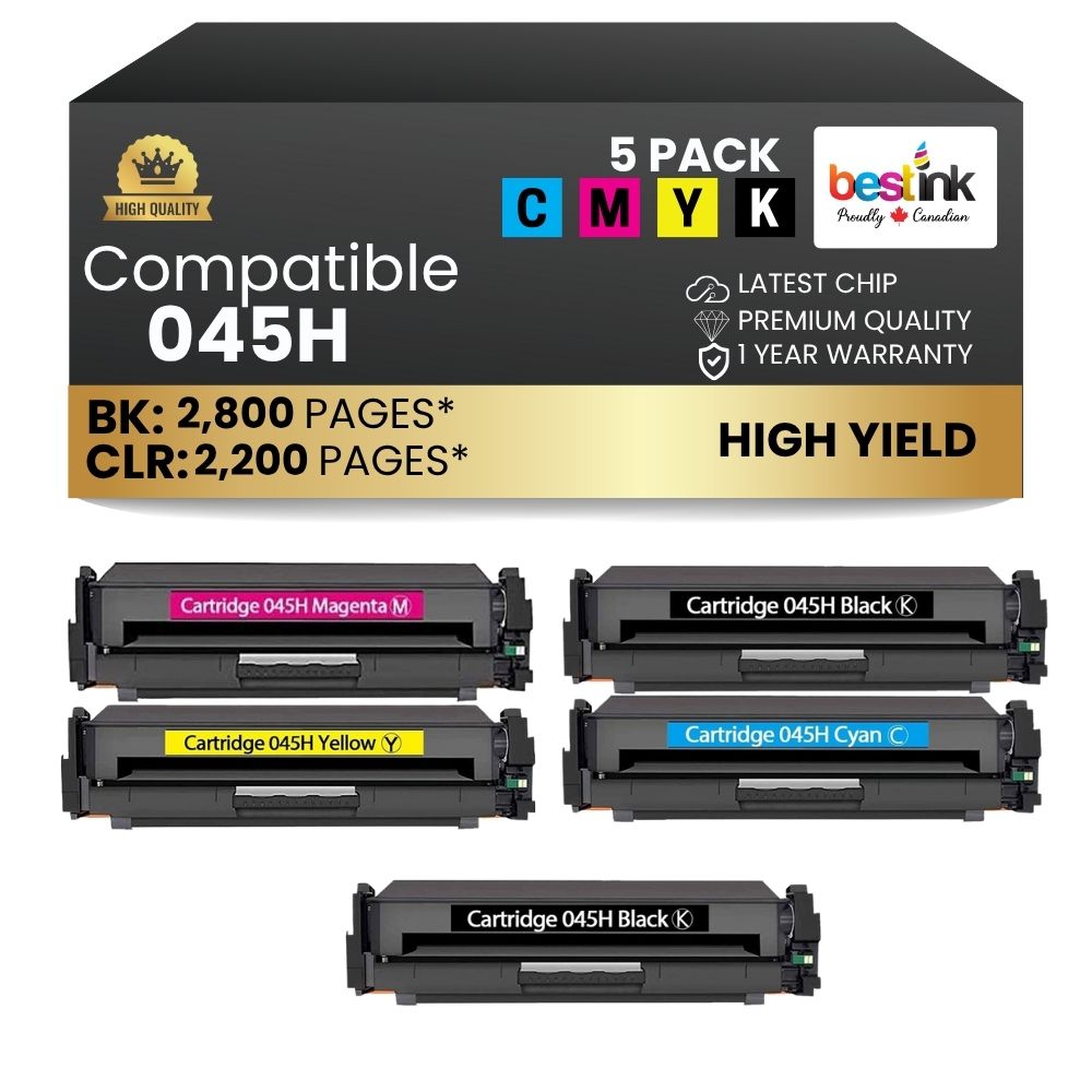 Canon 045H Combo Compatible Toner Cartridge High Yield 5 Pack (2 Black,1 Cyan,1 Magenta,1 Yellow)