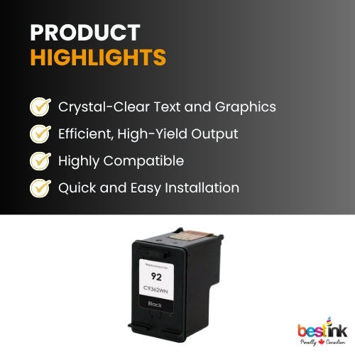 HP 92 Compatible Ink Cartridge Black ( 1 Pack ) Standrad Yield