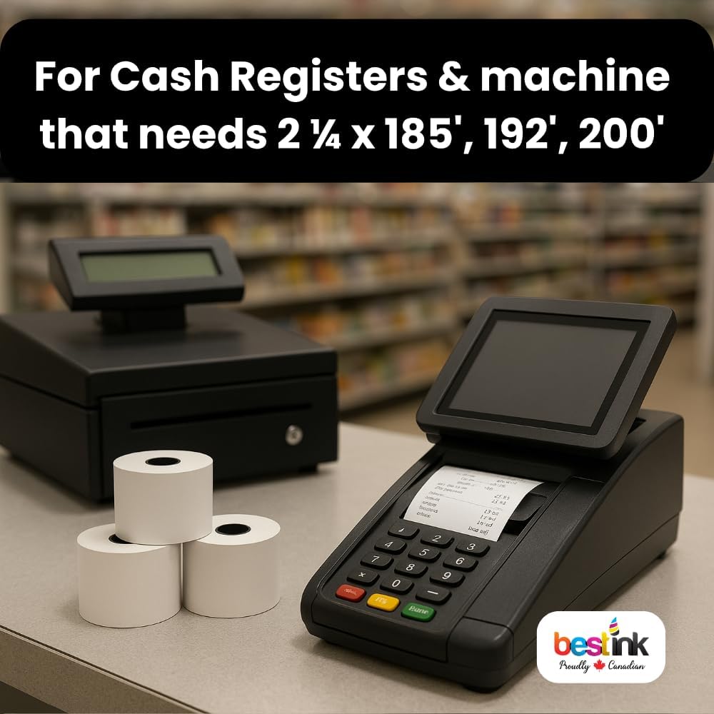 - Universal Compatibility & Versatile Fit: Designed to fit most 2-1/4″ POS systems, cash registers, credit card machines, and mobile printers. Compatible with rolls sized 185′, 192′, and 195′, making it a convenient replacement for multiple devices.
