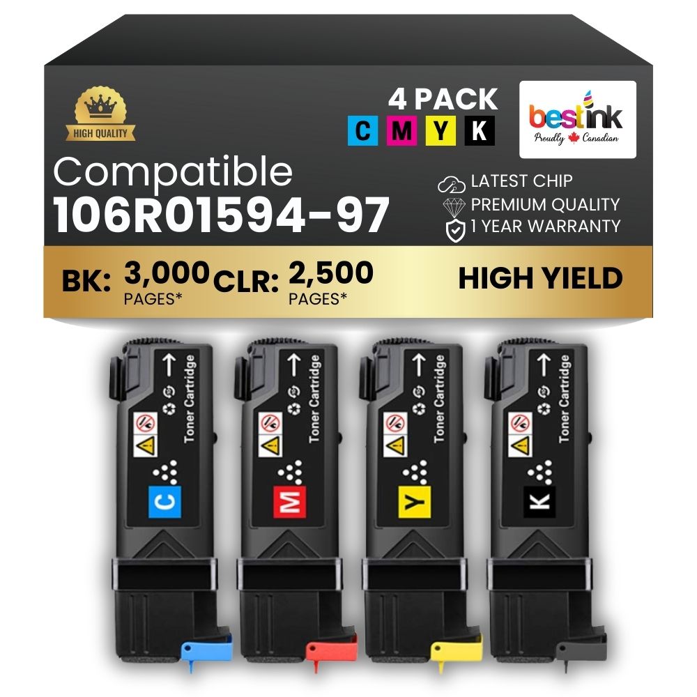 Compatible Xerox 106R01594/106R01595/106R01596/106R01597 BKCMY Toner Cartridge High Yield 4 Pack