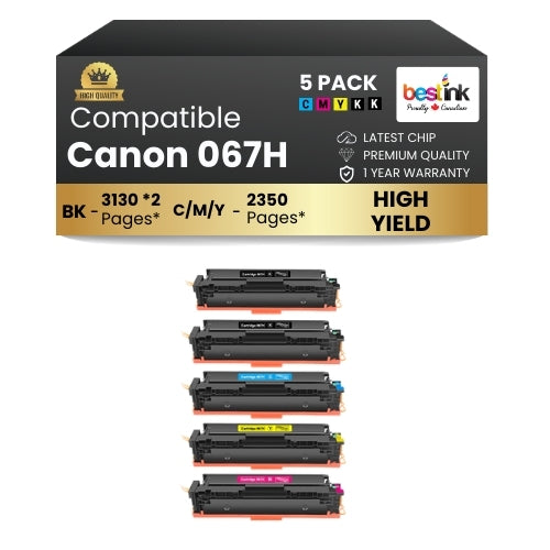 CANON 067H Comaptible Toner Cartridge BK/C/M/Y ( 5 Pack ) High Yield - (2X)