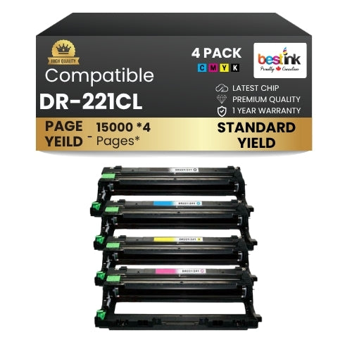 Brother DR-221CL Drum Unit Standard Yield BK/C/M/Y Combo ( 4 Pack )